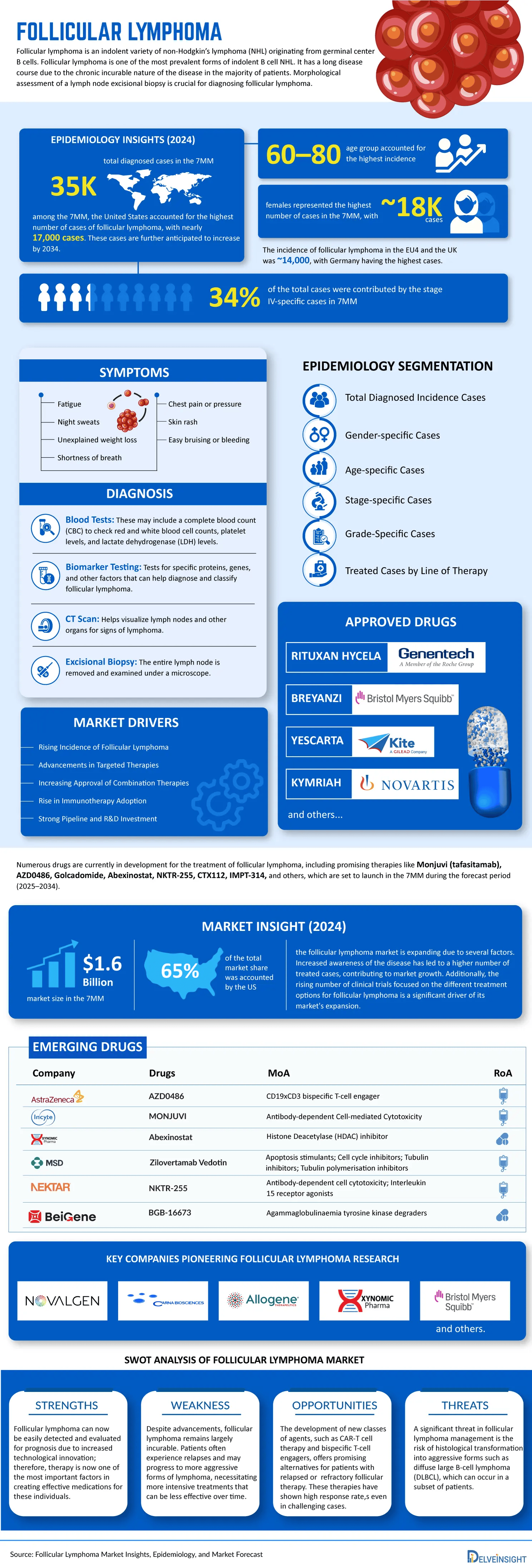 The follicular lymphoma therapeutics sector is expanding through diagnostic advancements and novel treatment development. Leading companies including Roche, Gilead, and Novartis are introducing innovative CD20-targeted therapies, bispecific antibodies, and CAR-T treatments that enhance response durability and patient outcomes. Evolving clinical guidelines and biomarker integration are enabling more precise management approaches for this B-cell malignancy.